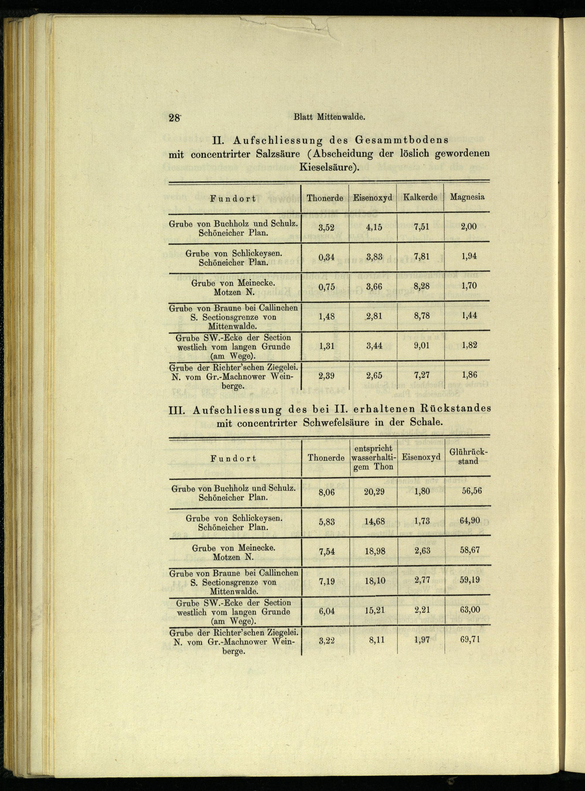 Il. Aufschliessung des Gesammtbodens mit concentrirter Salzsäure(Abscheidung der löslich gewordenen Kieselsäure).;