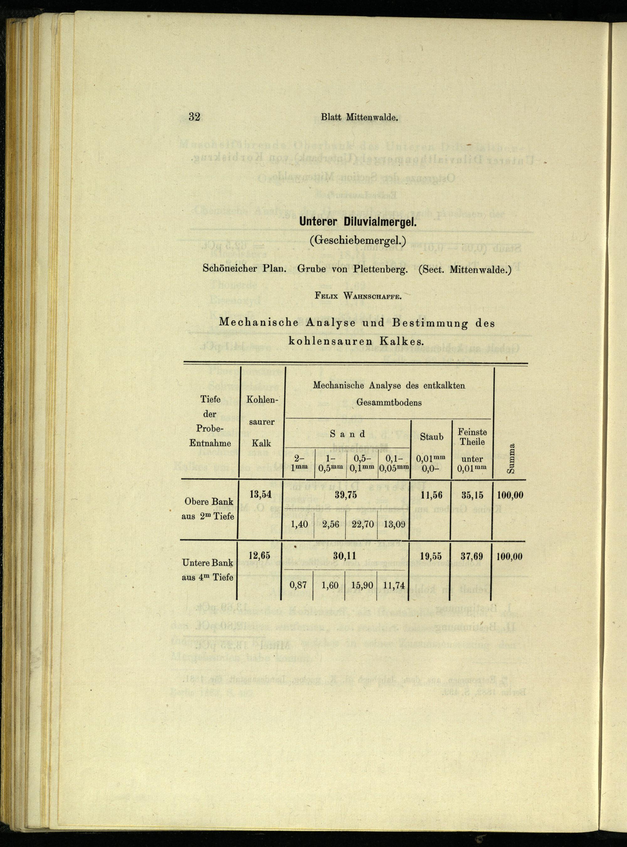 Tiefe Kohlen- Gesammtbodens der saurer Probe- Feinst: Sand taub einste Entnahme Kalk Stau Theile s 2- 1- 0,5-| 0,1- 1] 0,01mm I unter| ımm| 0,5mm'/Q,]mm(Q0,05mmli 0,0-- 0,01 mm DB 13,5 ‚75 11,56 35,15| 100,00 Obere Bank Ws W 7 LE aus 2m Tiefe| 1,40| 2,56 122,701 13,09 | N 12,65 30,11 19,55 37,69| 100,00 Untere Bank HE aus 4m Tiefe