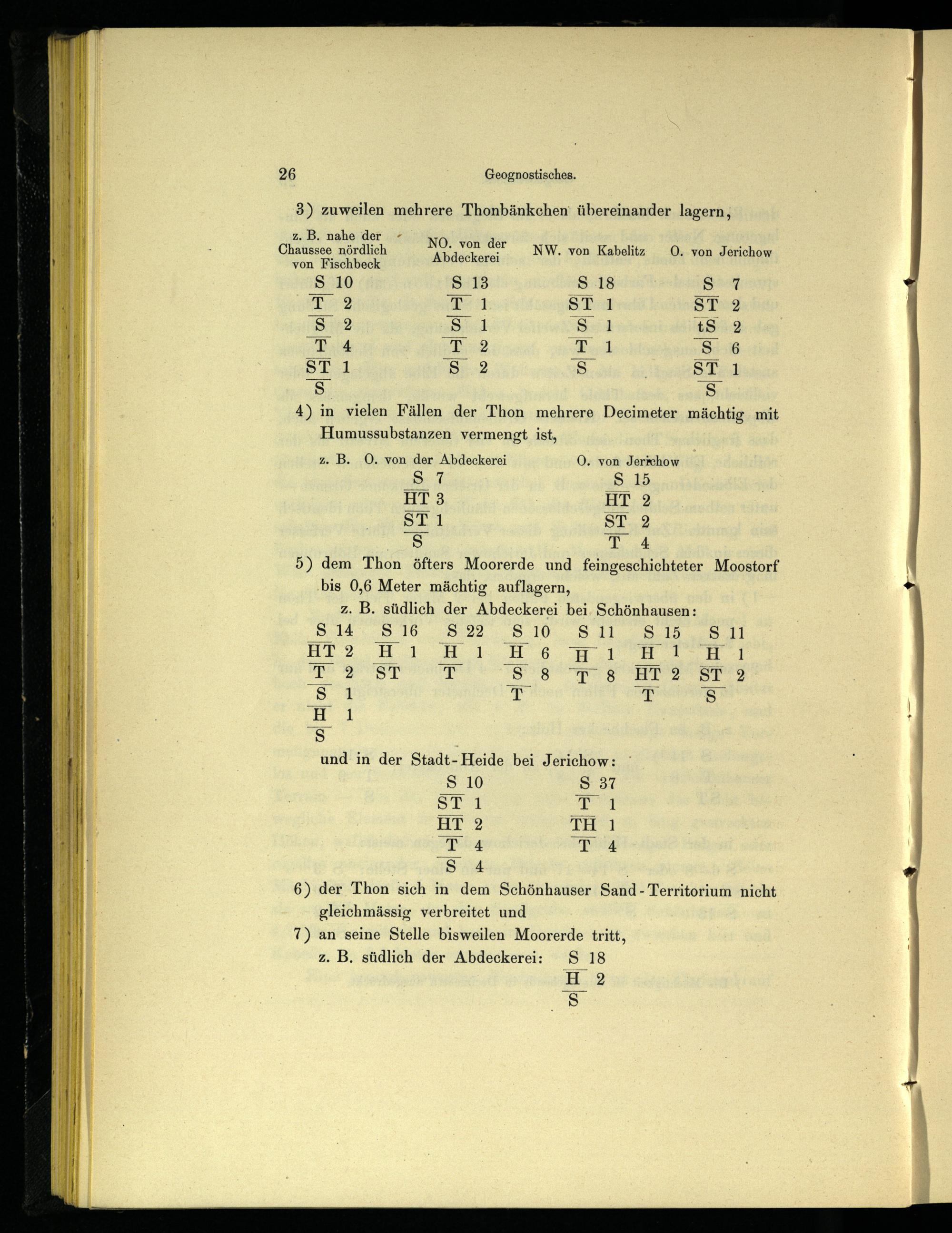 5) dem Thon öfters Moorerde und feingeschichteter Moostorf bis 0,6 Meter mächtig auflagern, z. B. südlich der Abdeckerei bei, Schönhausen: S14. S16 S22 S10 S1L1 S15, SI HT2 Hı HAıH6 HıLUHIL AI 2