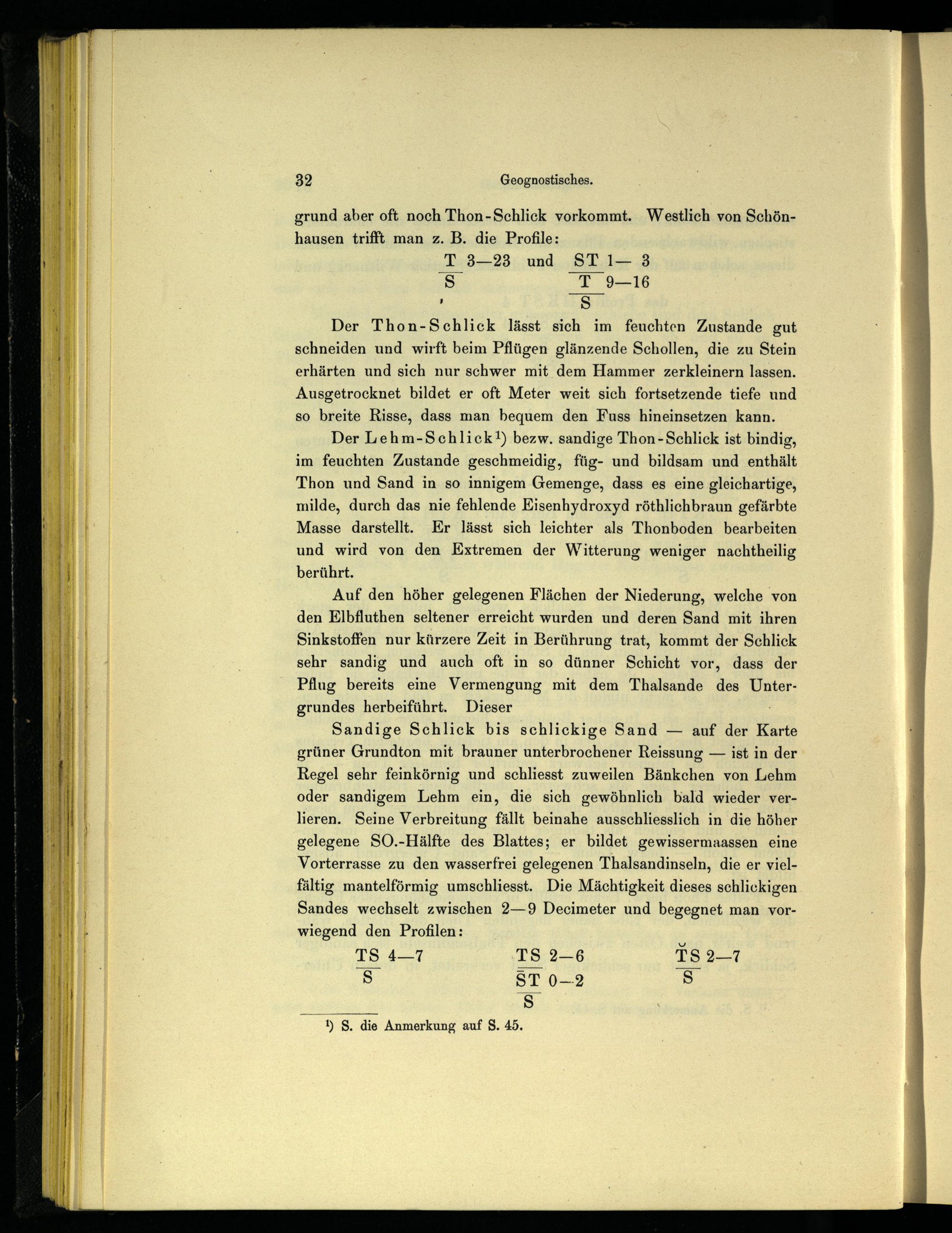 Sandes wechselt zwischen 2—9 Decimeter und begegnet man vorwiegend den Profilen: TS 4—7 TS 2—6 S 2—7 S ST 0—2 .Di S. die Anmerkung auf S. 45.
