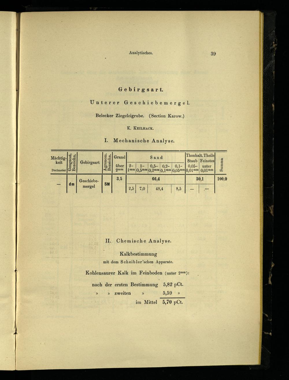 Gebirgsart. Unterer Geschiebemergel Belecker Ziegeleigrube.(Section Karow.) K. KEILHACK,