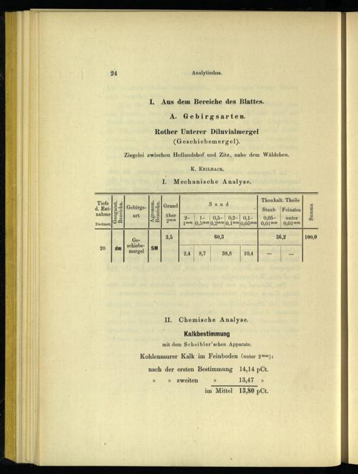 II. Chemische Analyse. Kalkbestimmung mit dem Scheibler’schen Apparate. Kohlensaurer Kalk im Feinboden(unter 2mm); nach der ersten Bestimmung 14,14 pCt.