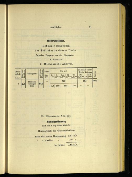 I. Mechanische Analyse. nn Sand_] Thonhalt. Theile [Grand| Staub|Feinstes