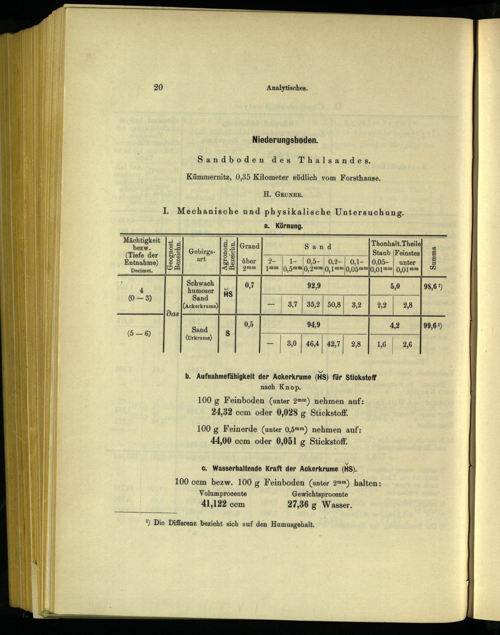 100 g Feinerde(unter 0,5») nehmen auf: 44,00 ccm oder 0,051 g Stickstoff.