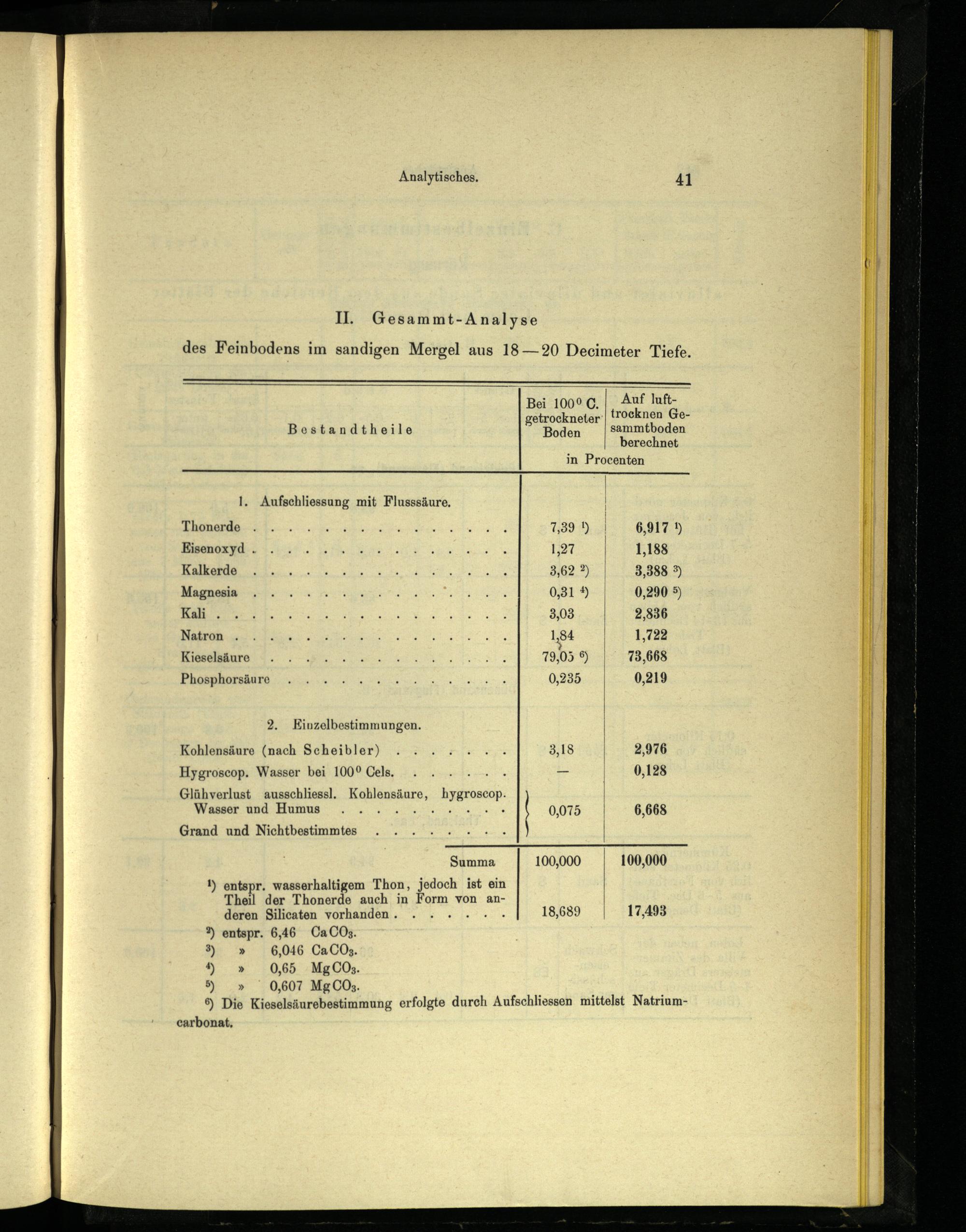 Il. Gesammt-Analyse des Feinbodens im sandigen Mergel aus 18—20 Deecimeter Tiefe.