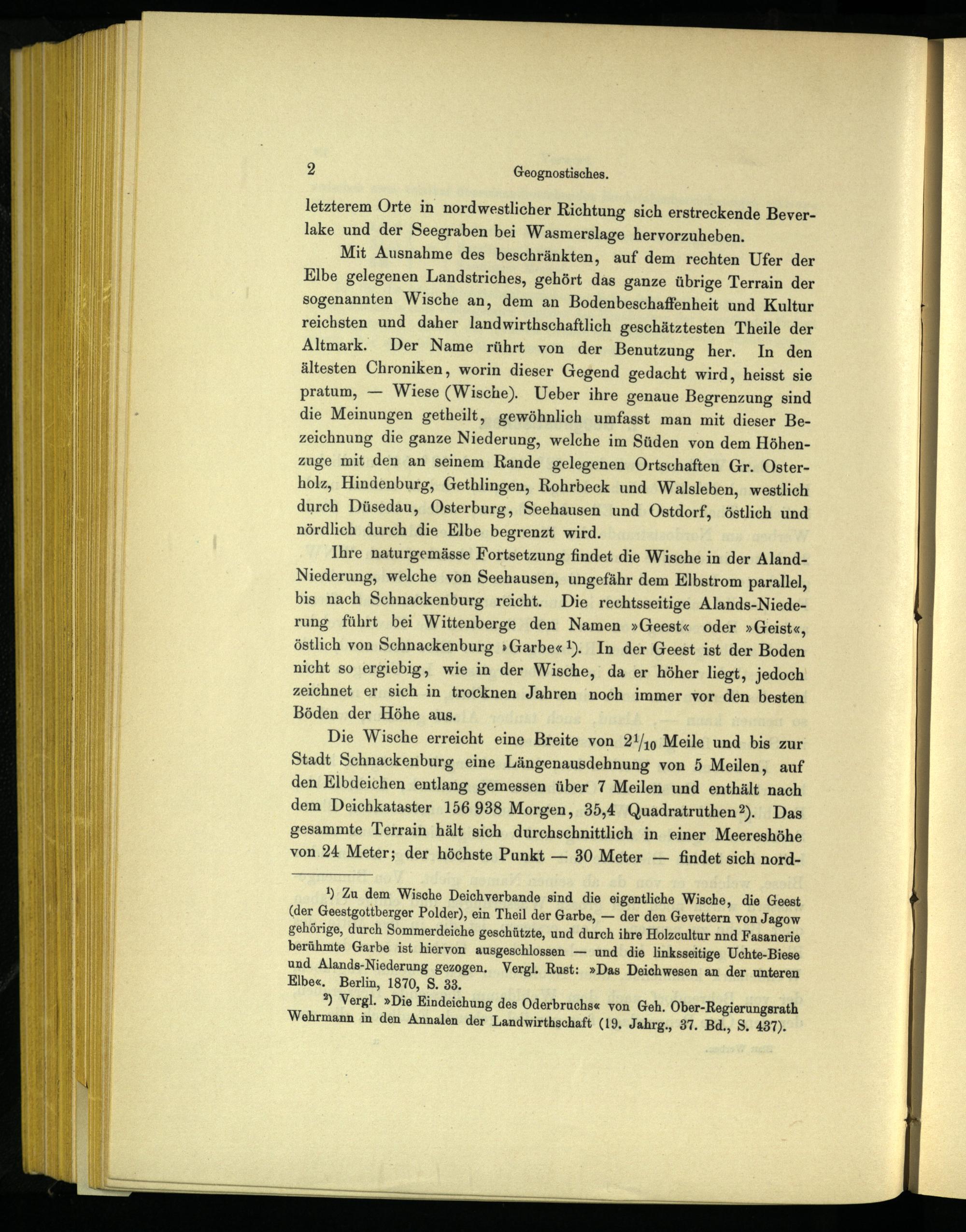 Ihre naturgemässe Fortsetzung findet die Wische in der AlandNiederung, welche von Seehausen, ungefähr dem Elbstrom parallel, bis nach Schnackenburg reicht. Die rechtsseitige Alands-Niederung führt bei Wittenberge den Namen»Geest« oder»Geist«, östlich von Schnackenburg»Garbe«1). In der Geest ist der Boden nicht so ergiebig, wie in der Wische, da er höher liegt, jedoch zeichnet er sich in trocknen Jahren noch immer vor den besten Böden der Höhe aus.