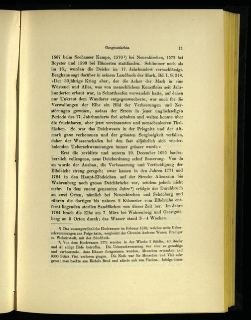 1) Das aussergewöhnliche Hochwasser im Februar 1570, welches weite Ueberschwemmungen zur Folge hatte, vergleicht der Chronist Andreas Wener, Prediger zu Wolmirstedt, mit der Sündfluth.