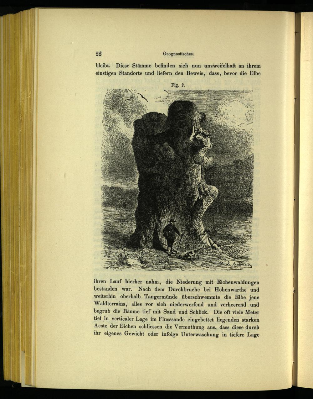 bleibt. Diese Stämme befinden sich nun unzweifelhaft an ihrem einstigen Standorte und liefern den Beweis, dass, bevor die Elbe