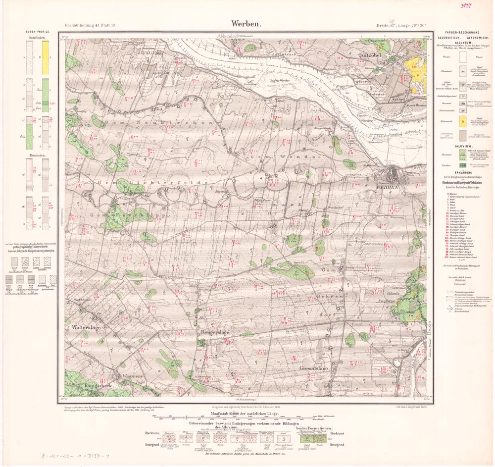 7000 500 0 500 7000 2000 3500 4000 Meter- 4 Kilometer. 7 D 500 7000 2000 2500 3000 3800 Z000 2500 5000 Schritt. VUebereinander bezw. mit Einlagerungen vorkommende Bildungen Dam Je8 Alluvium. beider Formationen. ao Formalrıonoszei ara ii Thon Drarlig: Sand Cd Male Oberkrume:_MHoorerde Der A ME„st. Oberkrume über Uber U nte rgru n d: Raseneisenstein, Grand Zhon und Sand Sand% Unter$rund. humos. Thon und über und bezw. bezw. Sund. PT a A Sand Sand bezw. Thon ‚grandigen Sand. ‚grandigen Sand