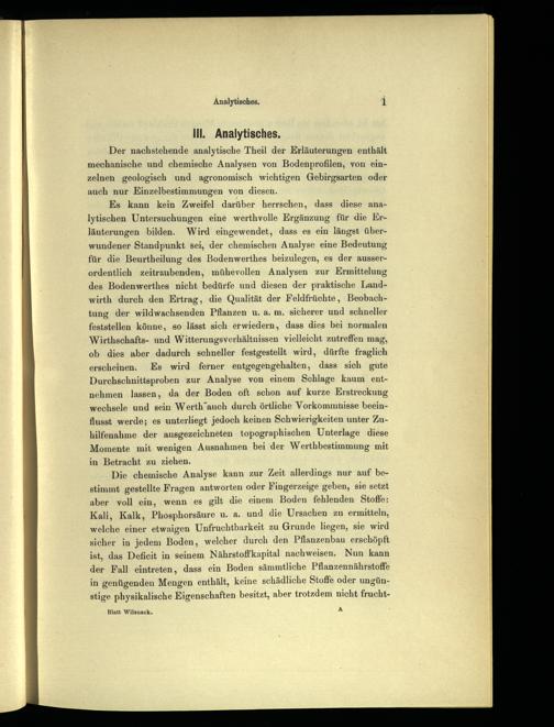 Der nachstehende analytische Theil der Erläuterungen enthält mechanische und chemische Analysen von Bodenprofilen, von einzelnen geologisch und agronomisch wichtigen Gebirgsarten oder auch nur Einzelbestimmungen von diesen.