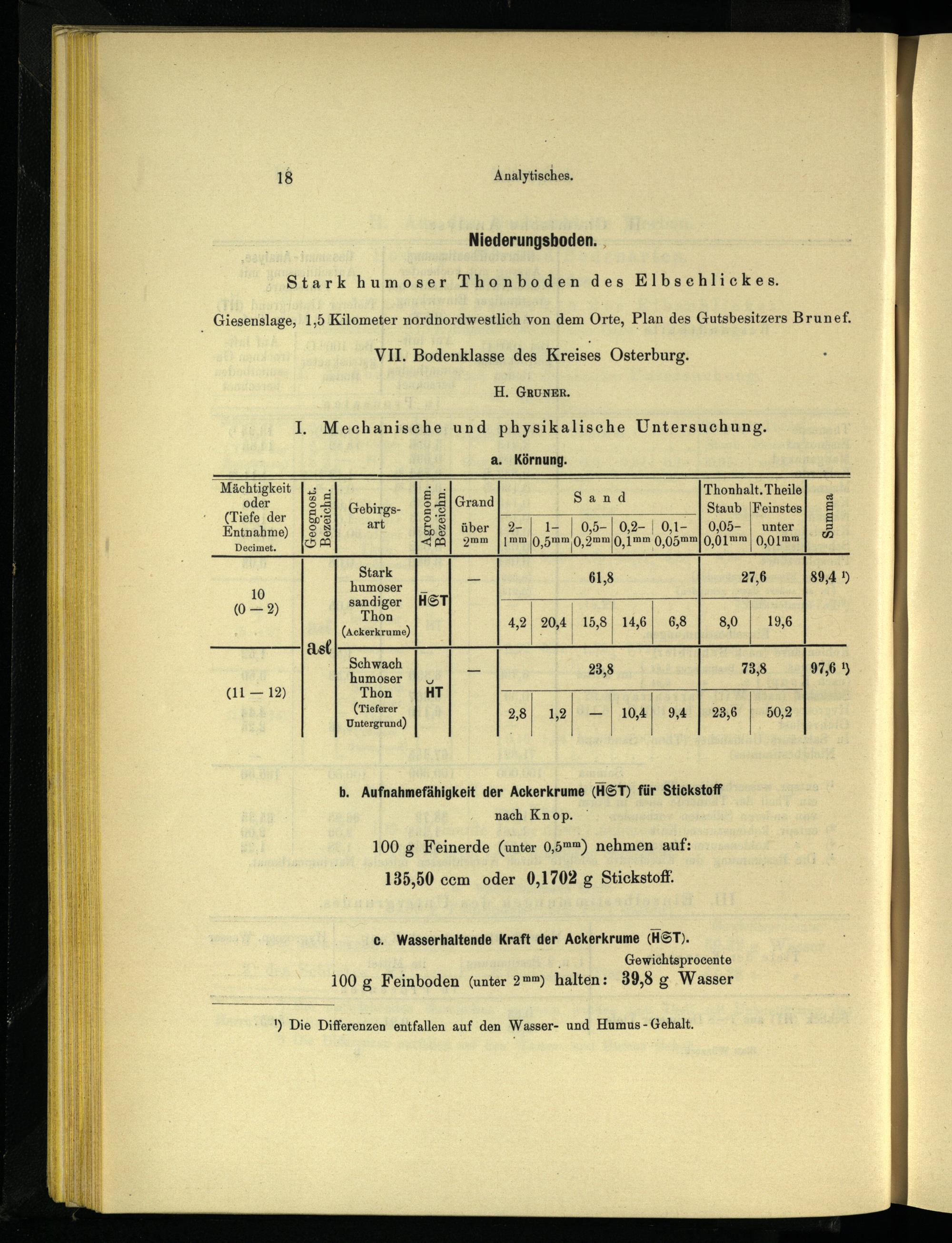 ') Die Differenzen entfallen auf den Wasser- und Humus- Gehalt.