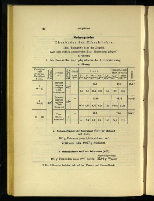 100 g Feinerde(unter 0,5") nehmen auf: 77,80 ccm oder 0,097 g Stickstoff.