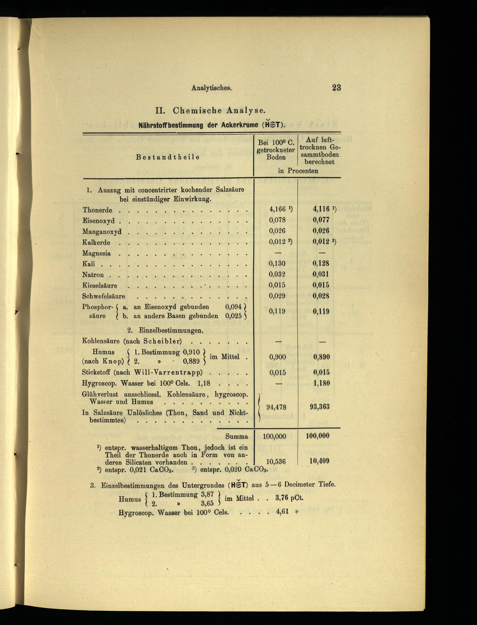 3. Einzelbestimmungen des Untergrundes(HSTD) aus 5—6 Decimeter Tiefe.