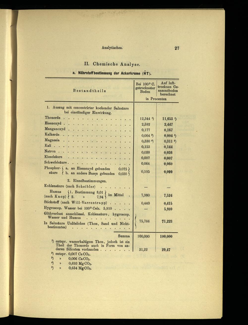 Phosphor-\ säure 2. Kinzelbestimmungen. Kohlensäure(nach Scheibler) Humus N Bestimmung 8,01 (nach Knop)( 2 7,94 Stickstoff(nach Will-Varrentrapp)