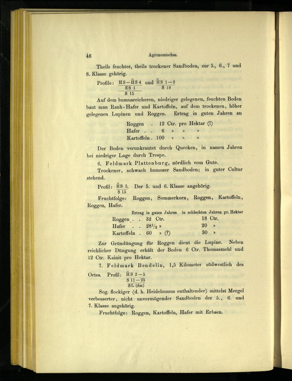 Profil: HS 5. Der 5. und 6. Klasse angehörig. S 15 Fruchtfolge: Roggen, Sommerkorn, Roggen, Kartoffeln,