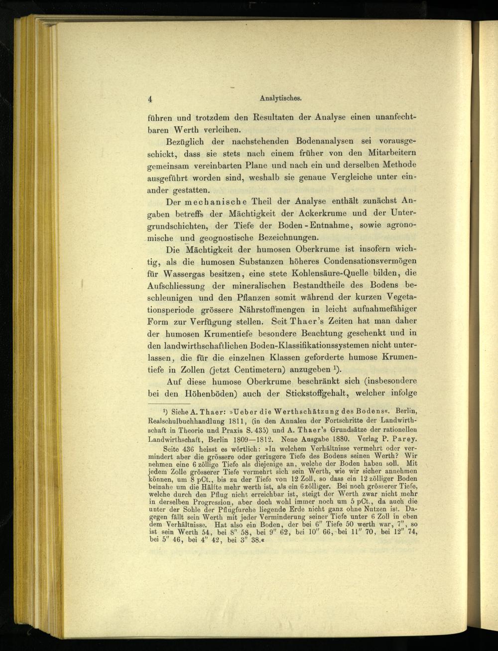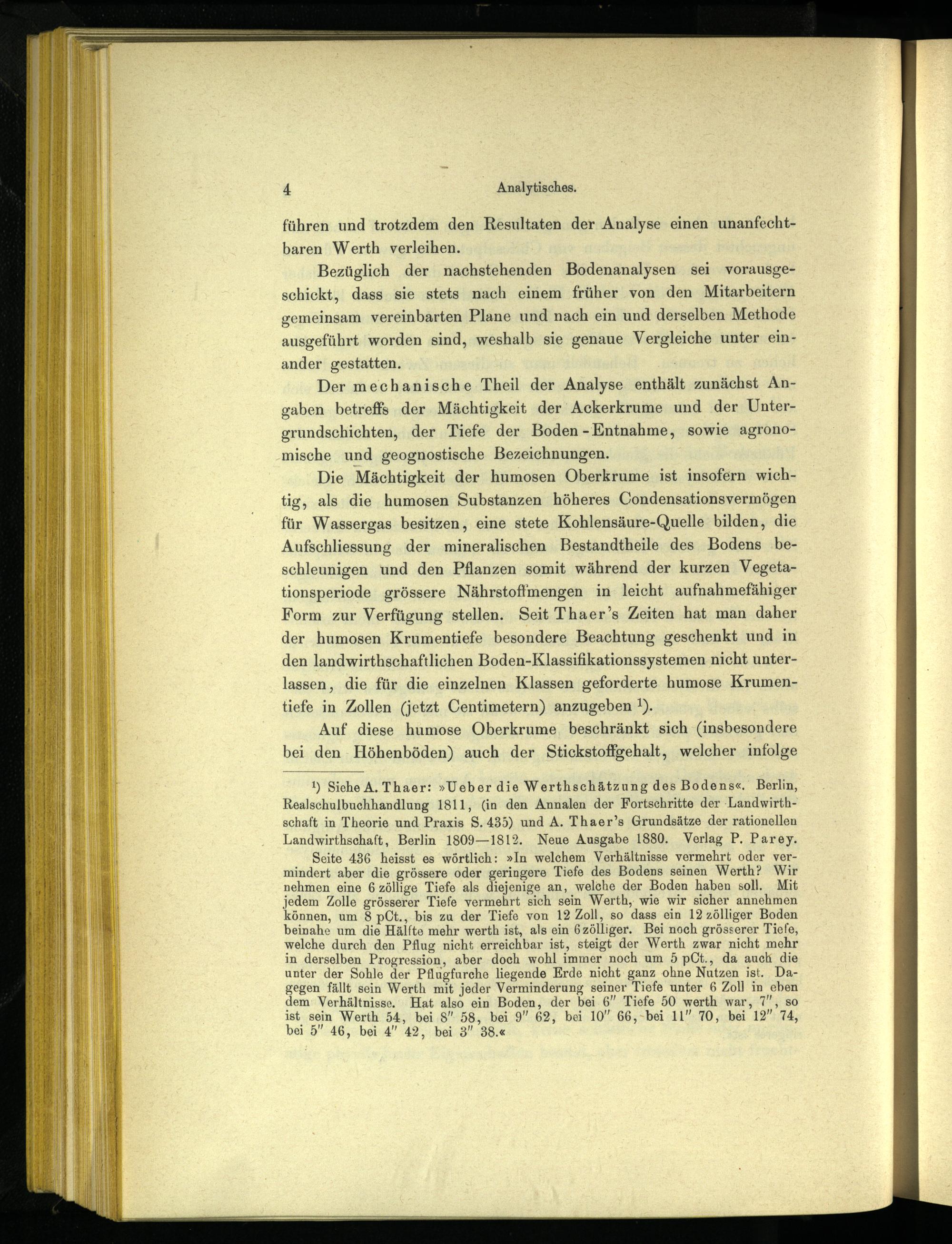 1) Siehe A, Thaer:»Ueber die Werthschätzung des Bodens«. Berlin, Realschulbuchhandlung 1811,(in den Annalen der Fortschritte der Landwirthschaft in Theorie und Praxis S. 435) und A. Thaer’s Grundsätze der rationellen Landwirthschaft, Berlin 1809—1812. Neue Ausgabe 1880. Verlag P, Parey.