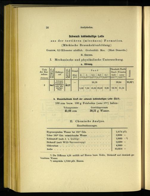 1) Die Differenz 4,98 entfällt auf Humus bezw. Kohle, Stickstoff und chemisch ger