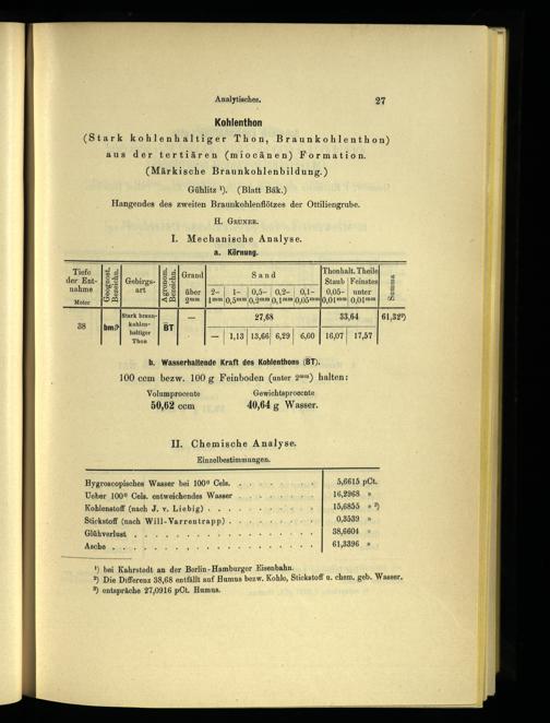 1) bei Kahrstedt an der Berlin- Hamburger Eisenbahn.) 2) Die Differenz 38,68 entfällt auf Humus bezw, Kohle, Stickstoff u. chem, geb