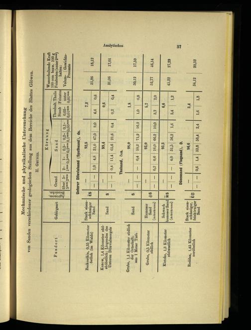 Mechanische und physikalische Untersuchung von Sanden verschiedener geologischen Stellung aus dem Bereiche des Blattes Glöwen.