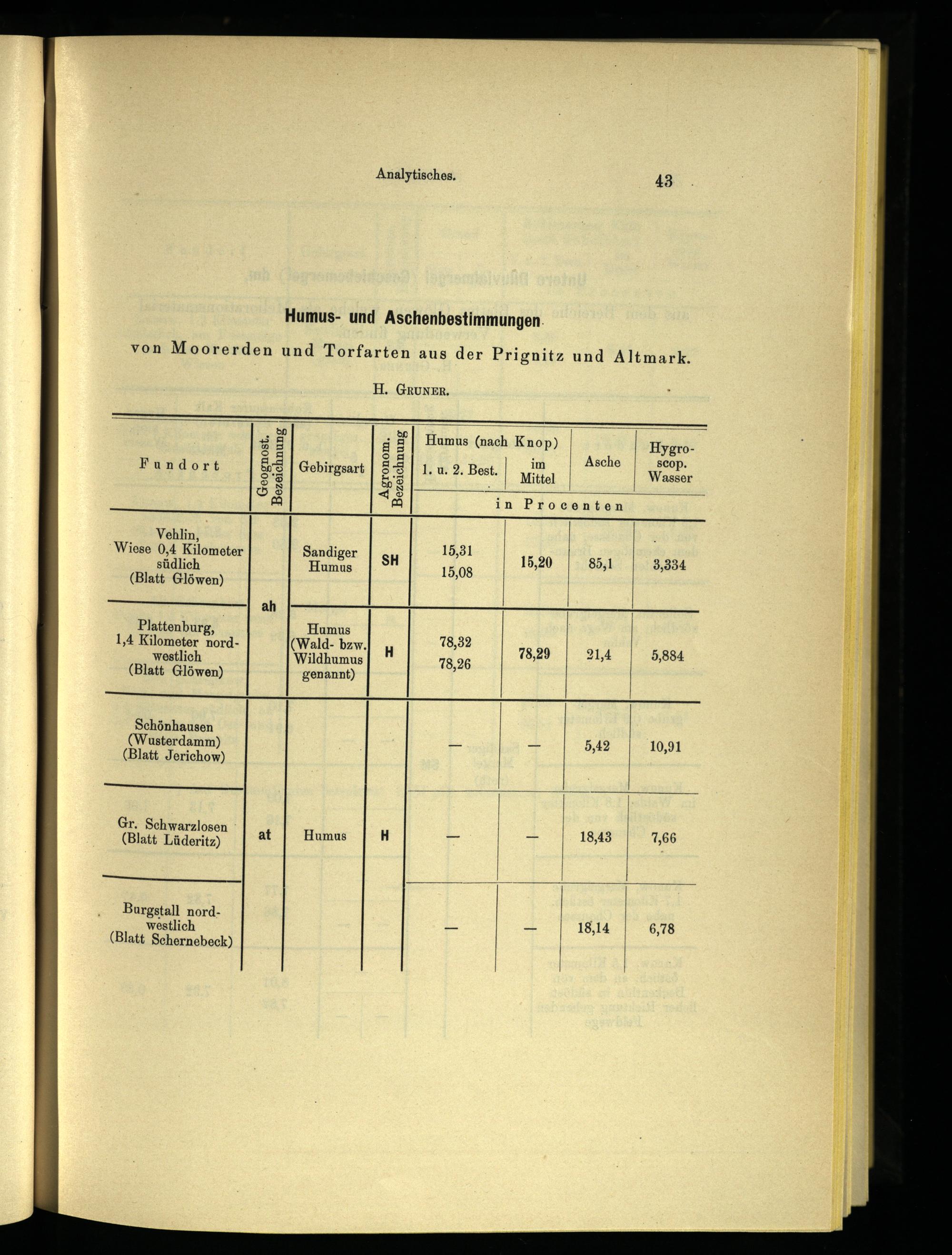 w Vehlin, Wiese 0,4 Kilometer Sandiger südlich Humus H 15,20 (Blatt Glöwen)| N————— Plattenburg, Humus 1,4 Kilometer nord-(Wald- bzw. 78,32 westlich Wildhumus 78,26 (Blatt Glöwen) genannt)