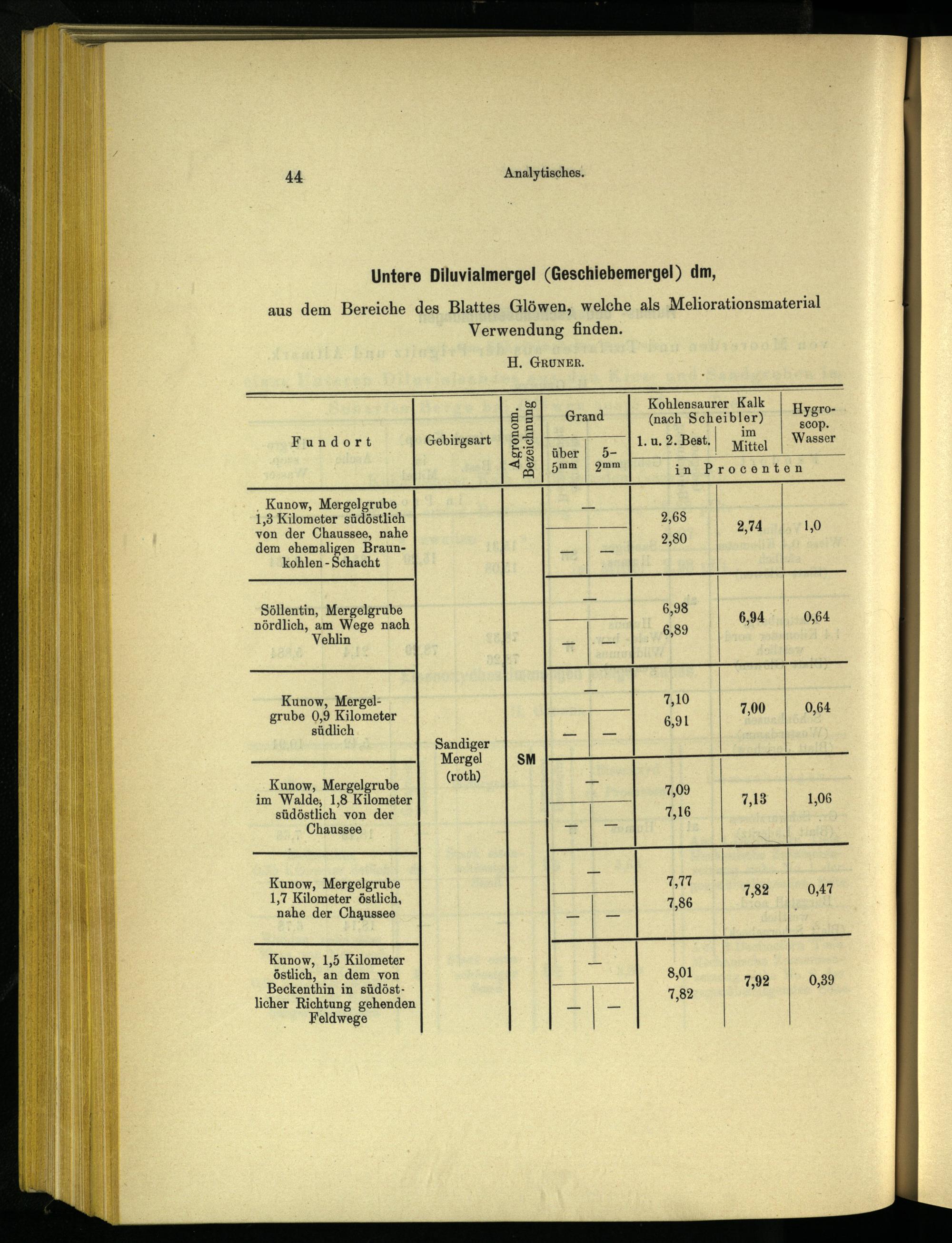 Untere Diluvialmergel(Geschiebemergel) dm, aus dem Bereiche des Blattes Glöwen, welche als Meliorationsmaterial Verwendung finden. H. GRUNER.