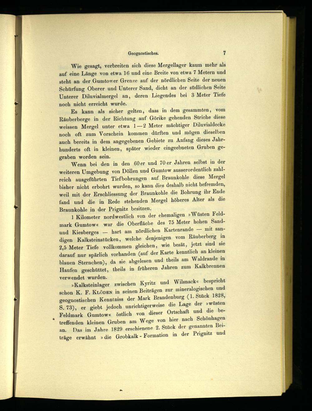 »Kalksteinlager zwischen Kyr schon K. F. KLÖDEN in seinen Beiträg geognostischen Kenntniss der Mark B S. 73), er giebt jedoch unrichtigerweise Feldmark Gumtow« östlich von dieser treffenden kleinen Gruben am Wege von hier an. Das im Jahre 1829 erschienene 2. Stück träge erwähnt» die Grobkalk- Formation in