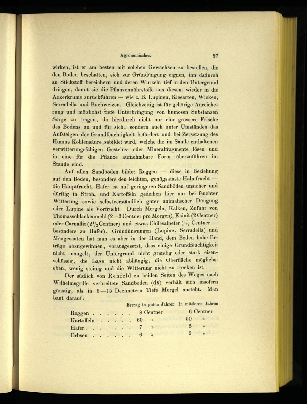 Der südlich von Rehfeld zu beiden Seiten des Weges nach Wilhelmsgrille verbreitete Sandboden(ds) verhält sich insofern günstig, als in 6—15 Decimetern Tiefe Mergel ansteht. Man