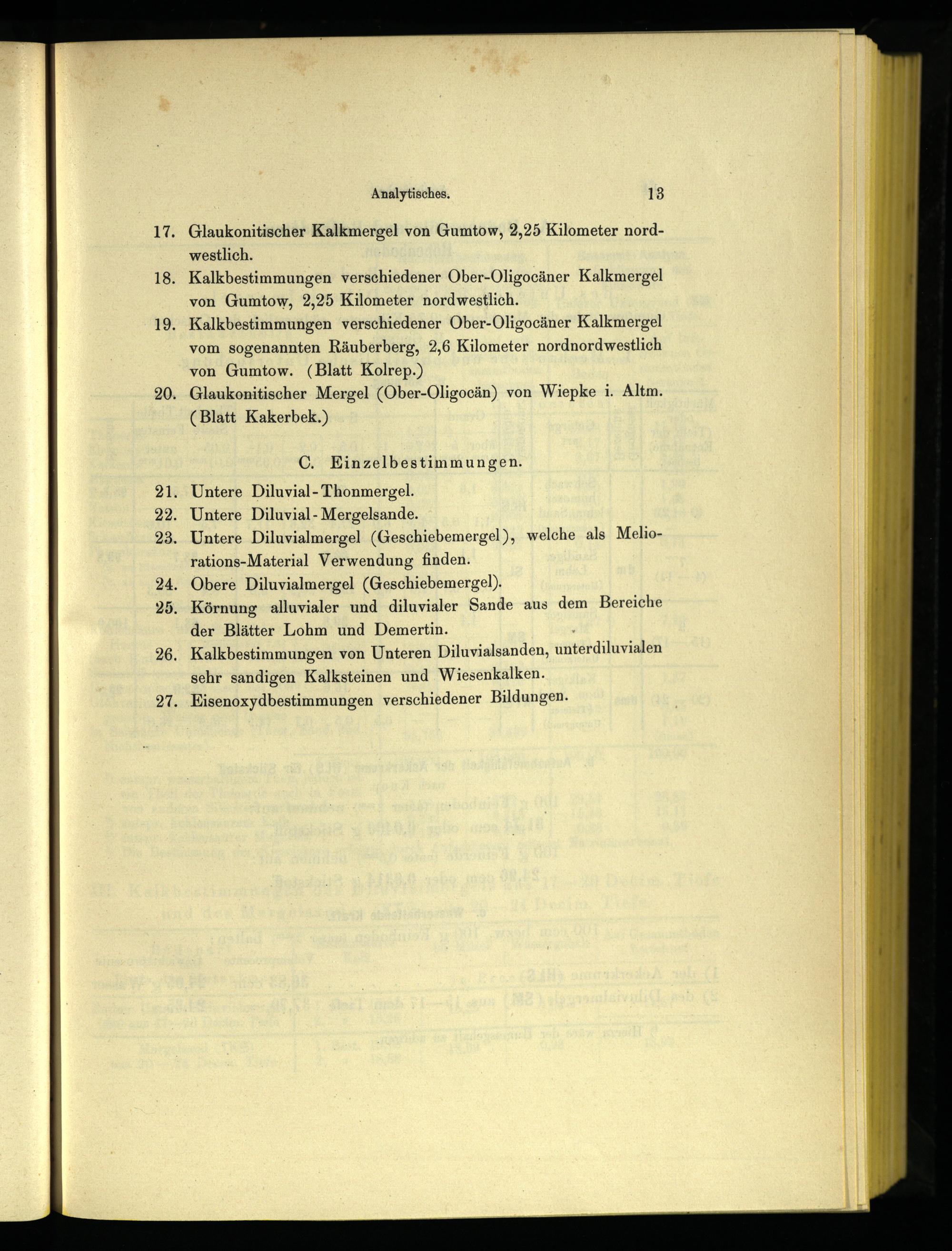 . Kalkbestimmungen von Unteren Diluvialsanden, unterdiluvialen sehr sandigen Kalksteinen und Wiesenkalken.