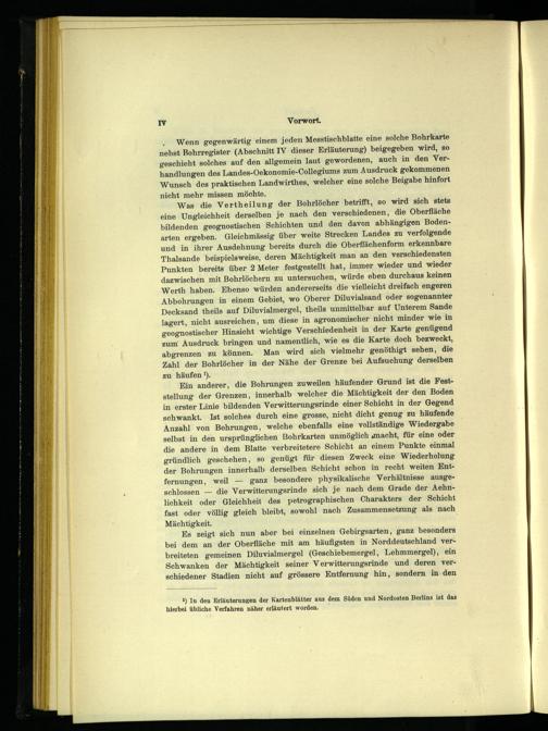 ‚ Wenn gegenwärtig einem jeden Messtischblatte eine solche Bohrkarte nebst Bohrregister(Abschnitt IV dieser Erläuterung) beigegeben wird, so geschieht solches auf den allgemein laut gewordenen, auch in den Verhandlungen des Landes-Oekonomie-Collegiums zum Ausdruck gekommenen Wunsch des praktischen Landwirthes, welcher eine solche Beigabe hinfort nicht mehr missen möchte.