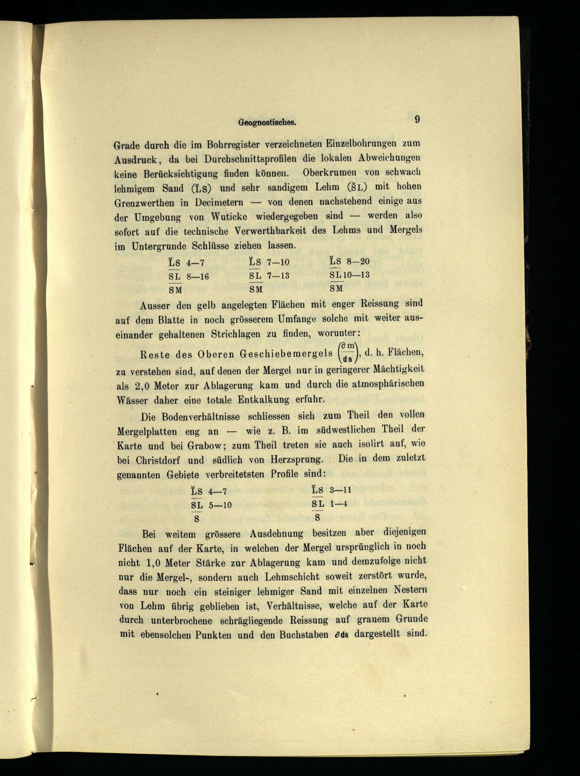 Die Bodenverhältnisse schliessen sieh zum Theil den vollen Mergelplatten eng an— wie z. B. im südwestlichen Theil der Karte und bei Grabow; zum Theil treten sie auch isolirt auf, wie bei Christdorf und südlich von Herzsprung. Die.in dem zuletzt genannten Gebiete verbreitetsten Profile sind: