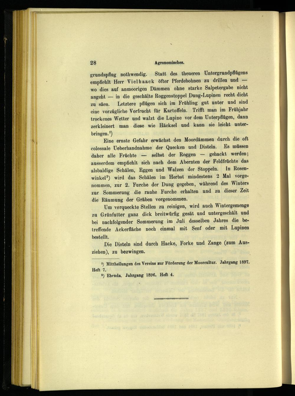 1) Mittheilungen des Vereins zur Förderung der Moorcultur. Jahrgang 1897. Heft 7. 2) Ebenda, Jahrgang 1896. Heft 4.