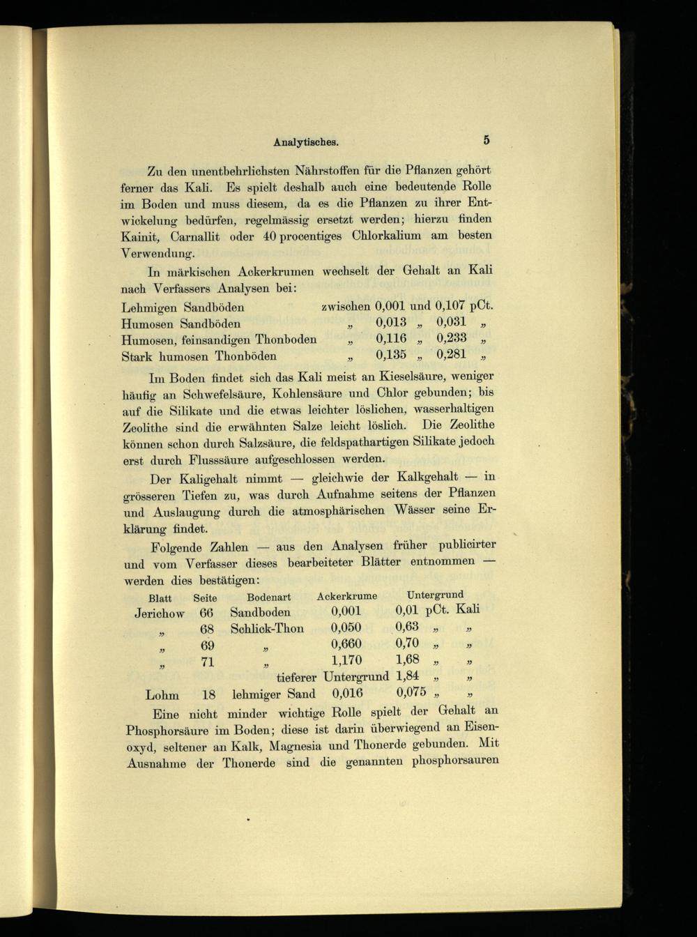 Jerichow 66 Sandboden 0,001 0,01 pCt. Kali 68 Schlick-Thon 0,050 0,63» 69» 0,660 0,70» 71» 1,170 168„» tieferer Untergrund 1,84» Lohm 18 Ilehmiger Sand 0,016 0,075,»