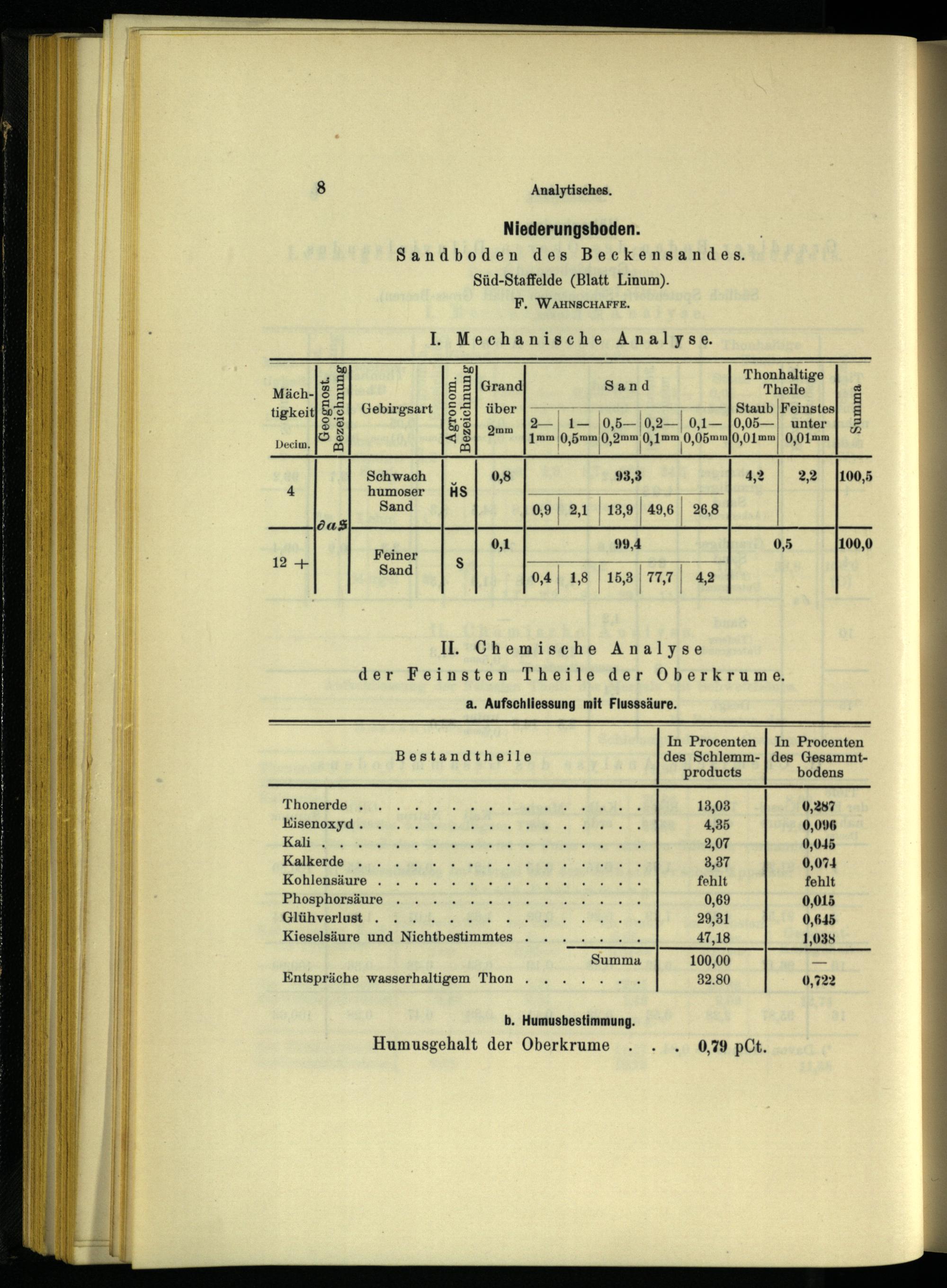 b. Humusbestimmung. Humusgehalt der Oberkrume... 0,79 pCt.