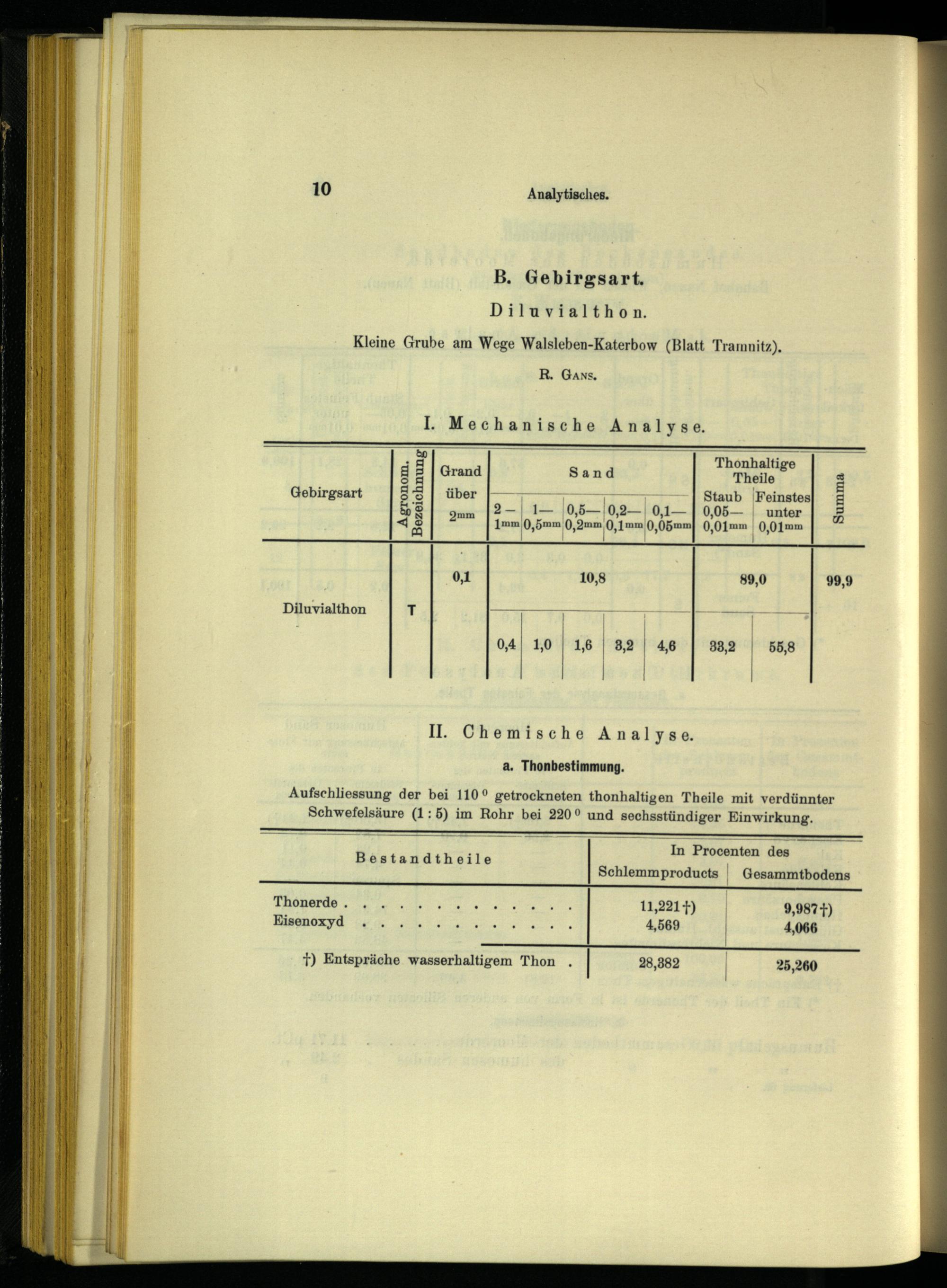 B. Gebirgsart. Diluvifalthon. Kleine Grube am Wege Walsleben-Katerbow(Blatt Tramnitz). R. Gans,