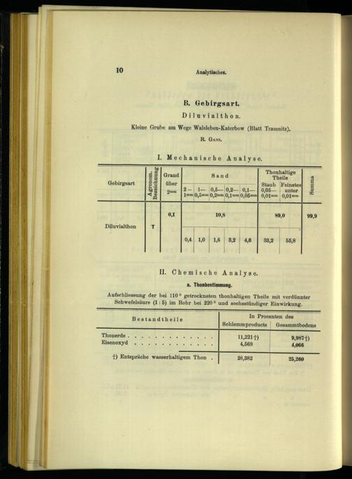 Thöonerde. ‚',..., en 11,221 4)| 9,9877) Eisenoxyd 24....0..0 1... 4,569| 4,066 | N EEE 4) Entspräche wasserhaltigem Thon| 28,382 25,260