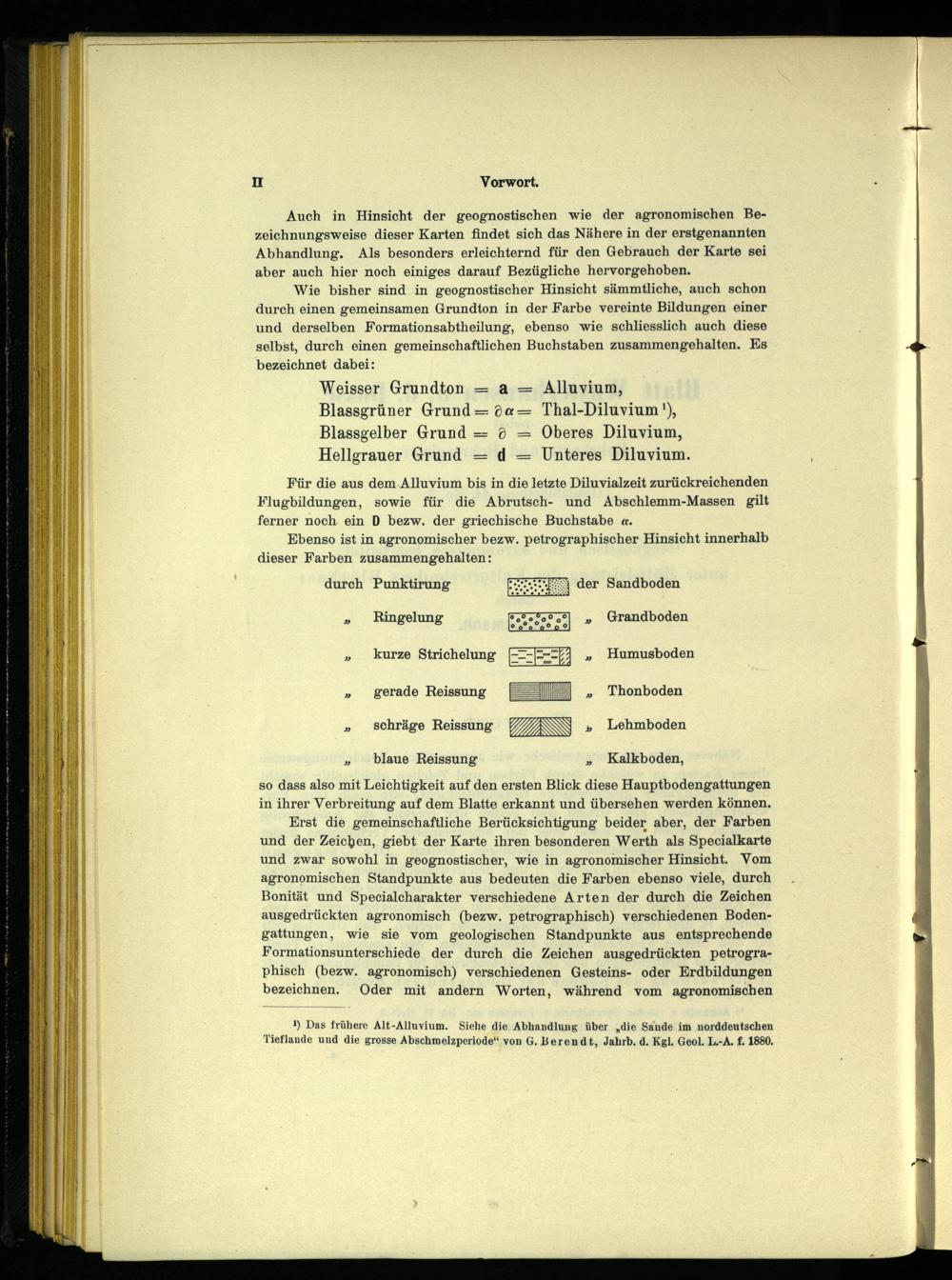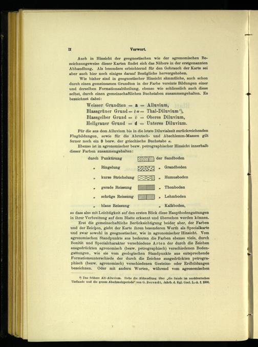Auch in Hinsicht der geognostischen wie der agronomischen Bezeichnungsweise dieser Karten findet sich das Nähere in der erstgenannten Abhandlung. Als besonders erleichternd für den Gebrauch der Karte sei aber auch hier noch einiges darauf Bezügliche hervorgehoben.