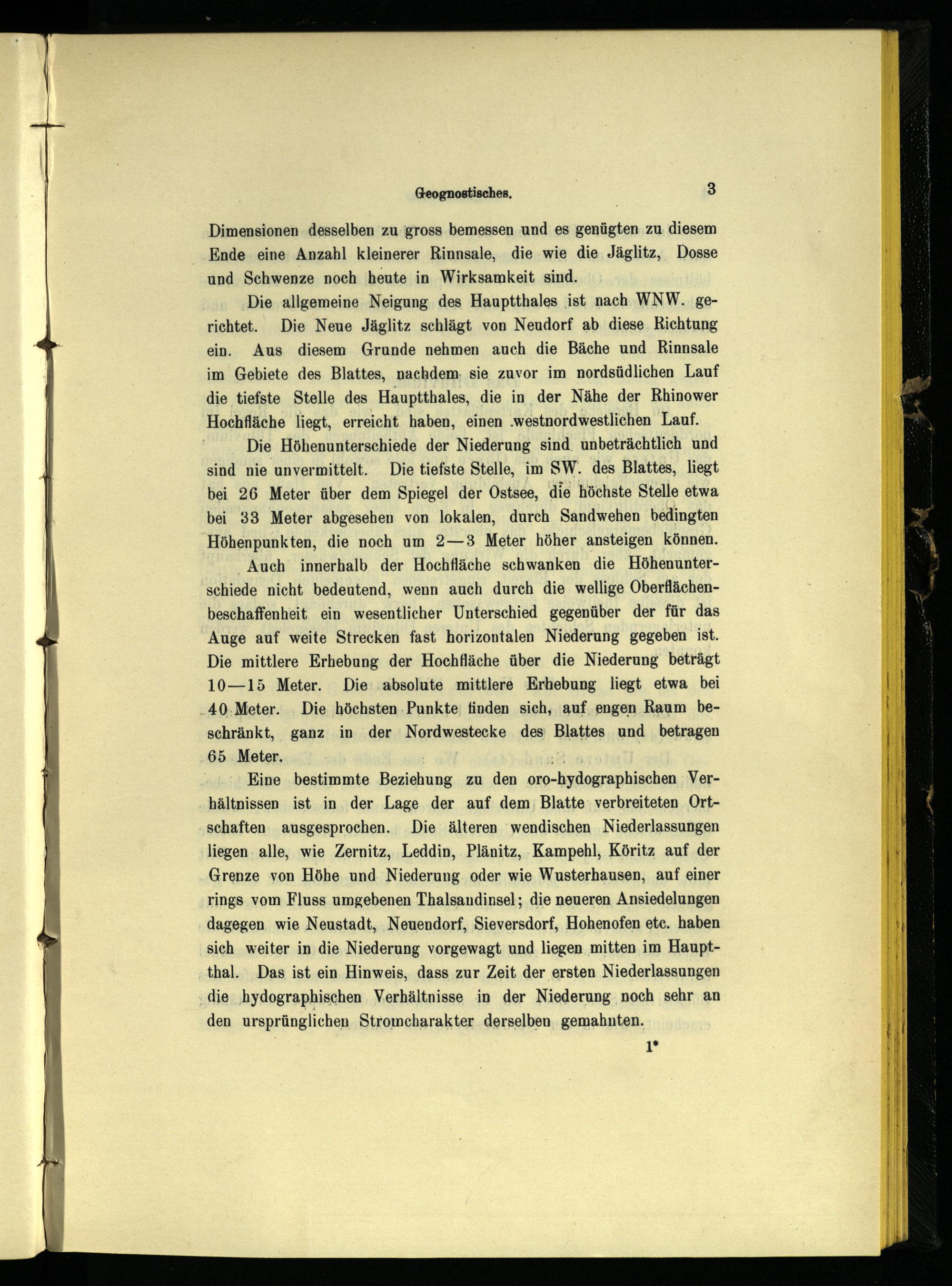 Die allgemeine Neigung des Hauptthales ist nach WNW. gerichtet. Die Neue Jäglitz schlägt von Neudorf ab diese Richtung ein. Aus diesem Grunde nehmen auch die Bäche und Rinnsale im Gebiete des Blattes, nachdem. sie zuvor im nordsüdlichen Lauf die tiefste Stelle des Hauptthales, die in der Nähe der Rhinower Hochfläche liegt, erreicht haben, einen.westnordwestlichen Lauf.
