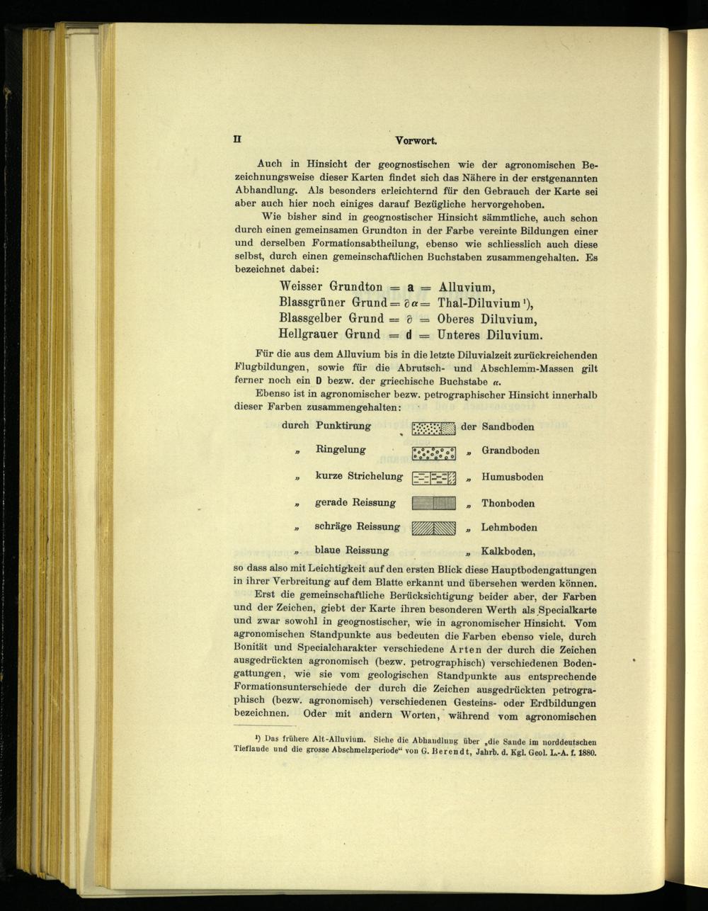 Auch in Hinsicht der geognostischen wie der agronomischen Bezeichnungsweise dieser Karten findet sich das Nähere in der erstgenannten Abhandlung. Als besonders erleichternd für den Gebrauch der Karte sei aber auch hier noch einiges darauf Bezügliche hervorgehoben.