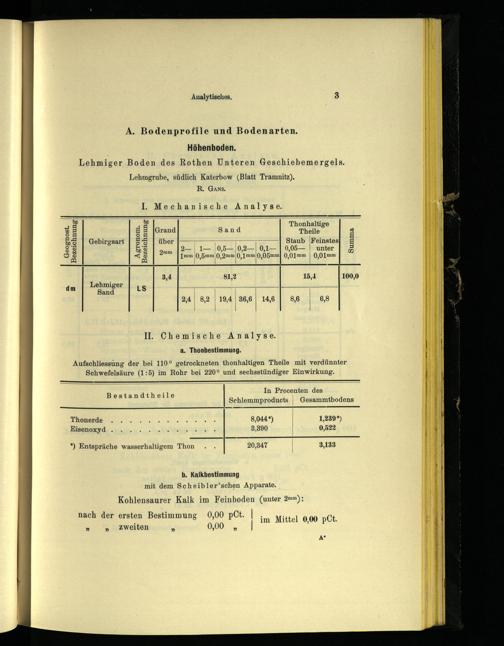 Höhenboden. Lehmiger Boden des Rothen Unteren Geschiebemergels. Lehmgrube, südlich Katerbow(Blatt Tramnitz). R, Gans.