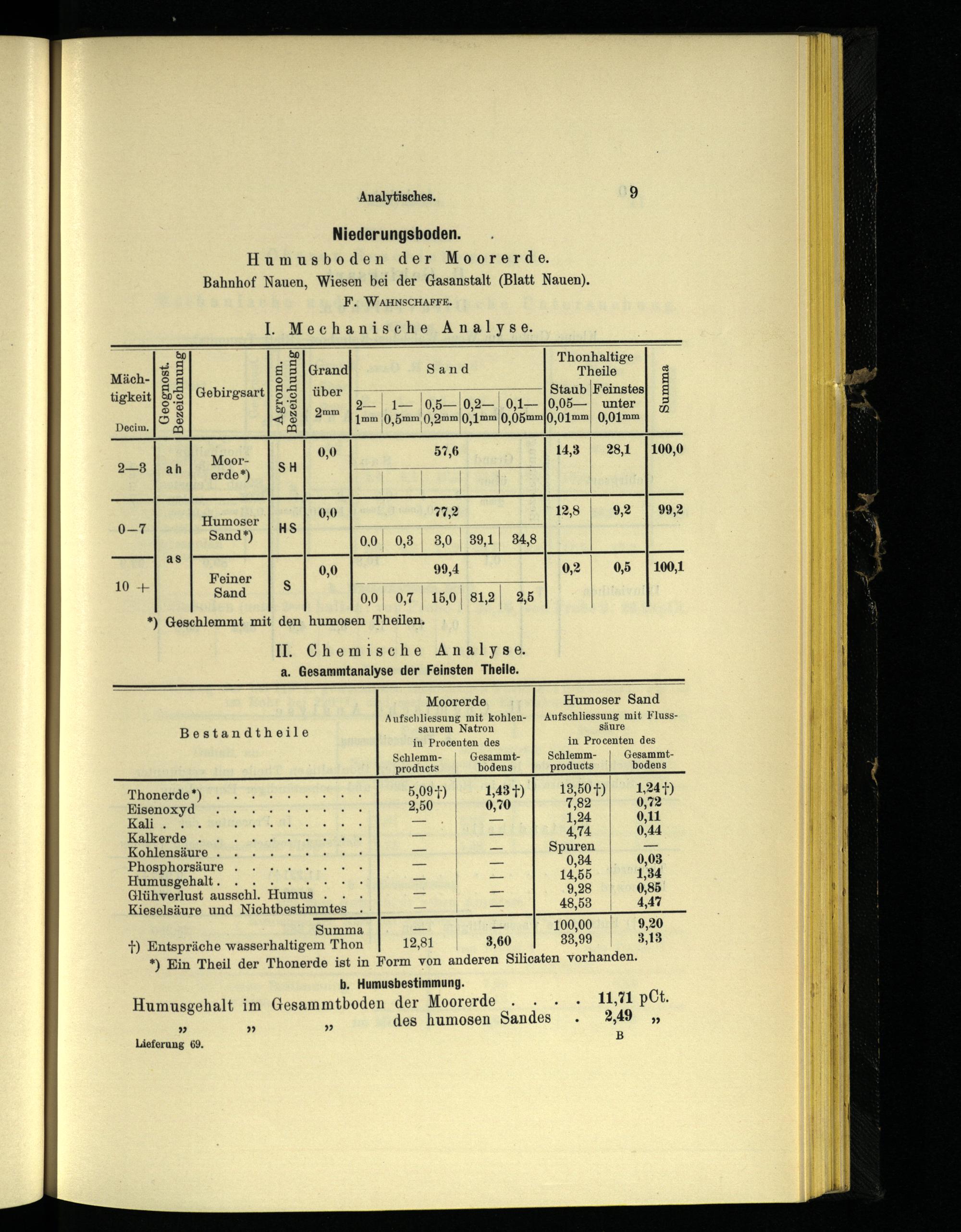 I. Mechanische Analyse. LH Thonhaltige Theile - UT Staub Feinstes 2 1 0,5—|0,2— 0,1—|0,05—| unter 1mm(),5mm 0,2mm 0,1mm 0,05mm 0,01mm 0,01mm