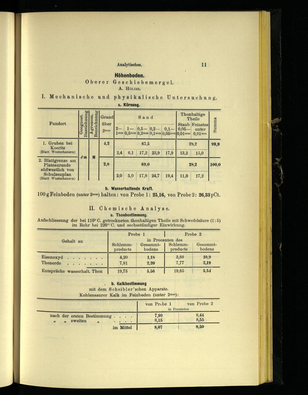 b. Wasserhaltende Kraft. 100 g Feinboden(unter 2»m) halten: von Probe 1: 25,16, von Probe 2: 26,33pCt.