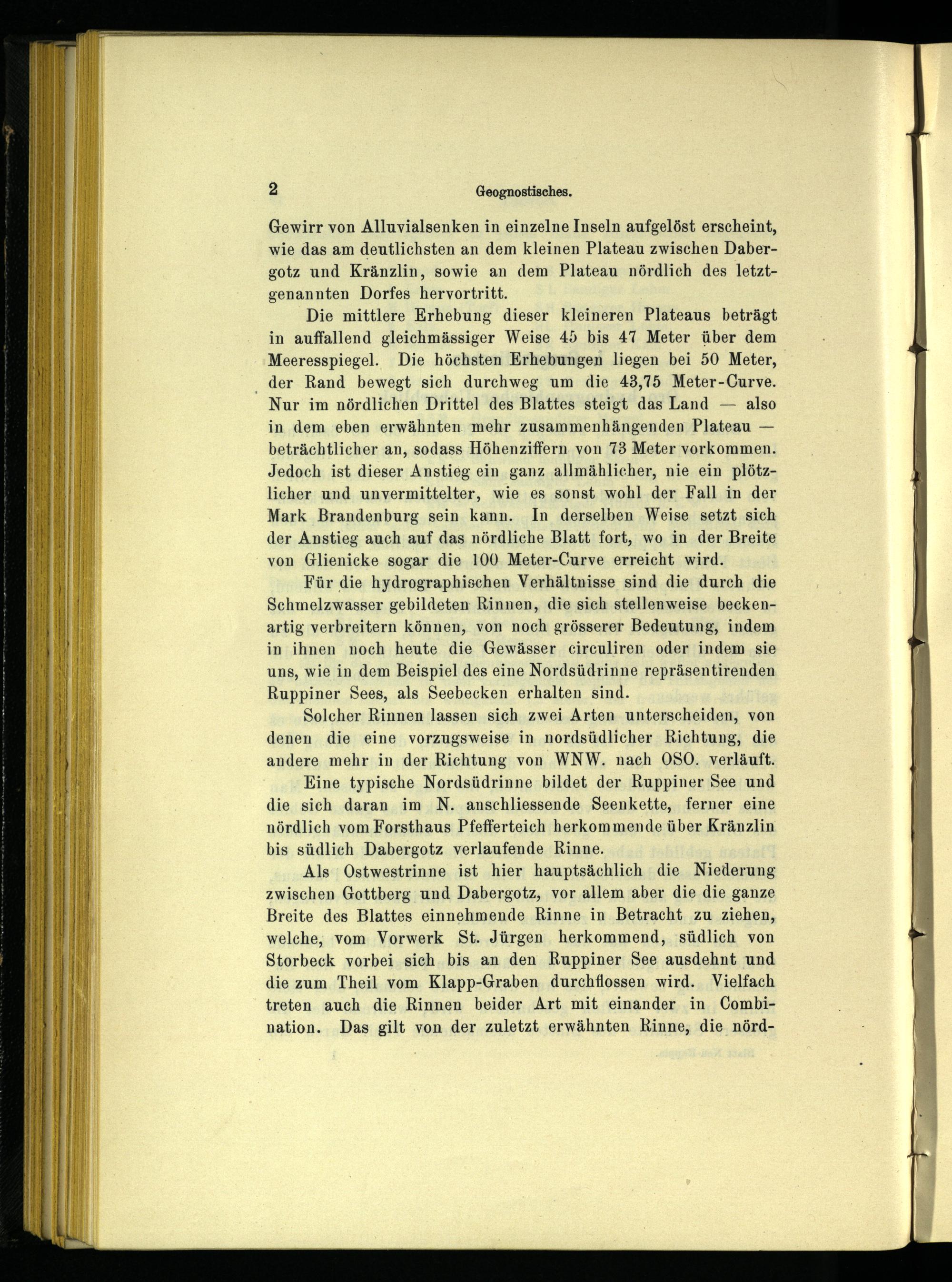 Eine typische Nordsüdrinne bildet der Ruppiner See und die sich daran im N. anschliessende Seenkette, ferner eine nördlich vom Forsthaus Pfefferteich herkommende über Kränzlin bis südlich Dabergotz verlaufende Rinne.