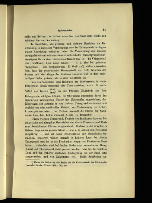 1) Ueber die Bedeutung der Steine für die Fruchtbarkeit des Ackerlandes, Deutsche Landw, Presse 1898. No. 40.
