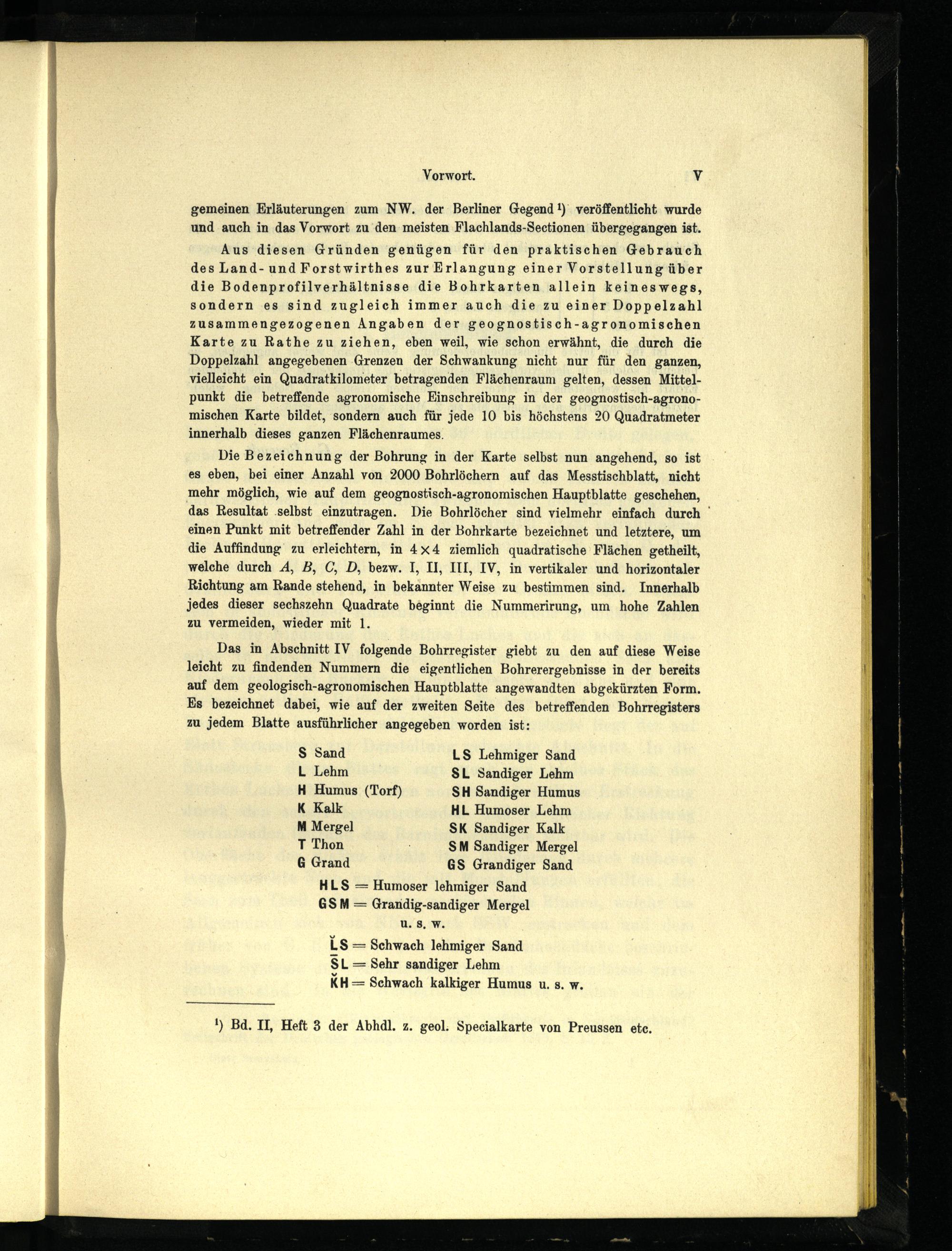 HLS= Humoser lehmiger Sand GSM= Grandig-sandiger Mergel u. 8, W. LS= Schwach lehmiger Sand SL= Sehr sandiger Lehm KH= Schwach kalkiger Humus u. s. w.