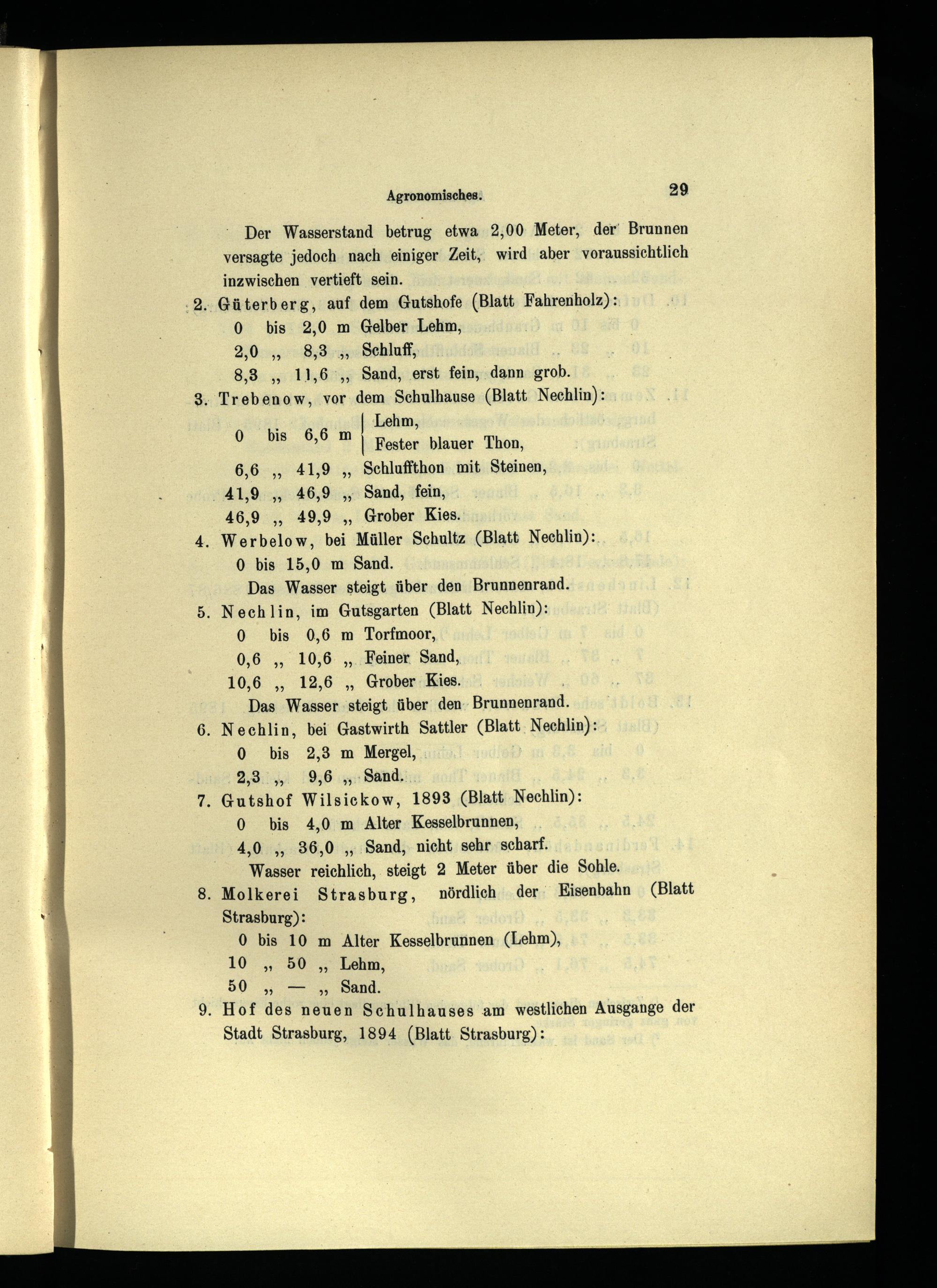 Wasser reichlich, steigt 2 Meter über die Sohle. . Molkerei Strasburg, nördlich der: Eisenbahn (Blatt Strasburg):