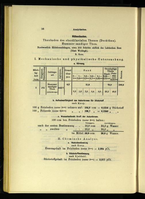 Höhenboden.| Thonboden des oberdiluvialen Thones(Deckthon). ‘ Humoser sandiger Thon. Nordwestlich Hildebrandshagen, etwa 300 Schritte südlich des Labüschen Sees (Blatt Woldegk ).: R. Gans.