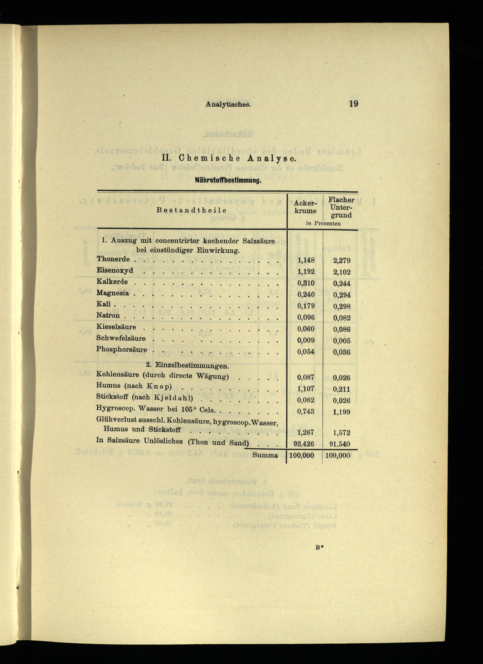 2. Einzelbestimmungen. Kohlensäure(durch directe Wägung) Humus(nach Knop) Stickstoff(nach Kjeld ahl) Hygroscop. Wasser bei 105° Cels..