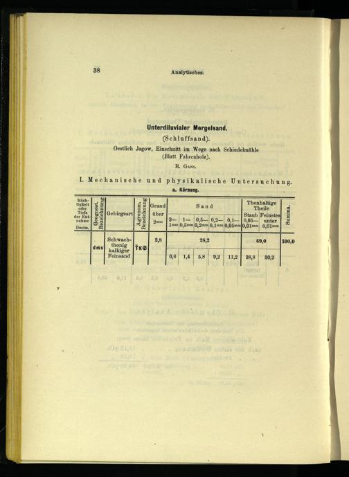 EEE Mäch-|, 3«=. Thonhaltige tigkeit| 5 5 5|Grand Sand Theile s Tiefe| 5-S|Gebirgsart| 52| über Staub Feinstes|& IS® 58 amm|2—| 1—|0,5— 0,2— 0,1—1|0,05— unter|£ ©: mm m Dam 1°8 S 1mm 0,5mm 0,2mm/0,1mm 0,05mm{0,01mm| 0,01mm EEE ann EEE Emm I SEE FE EEE ES A KA A Schwach- 2,8 28,2 69,0 100,0 thonig[x dms Kalkiser TKS 7 Feinsand 0,6| 1,41 5,8|9,2| 11,2|"38,8| 30,2