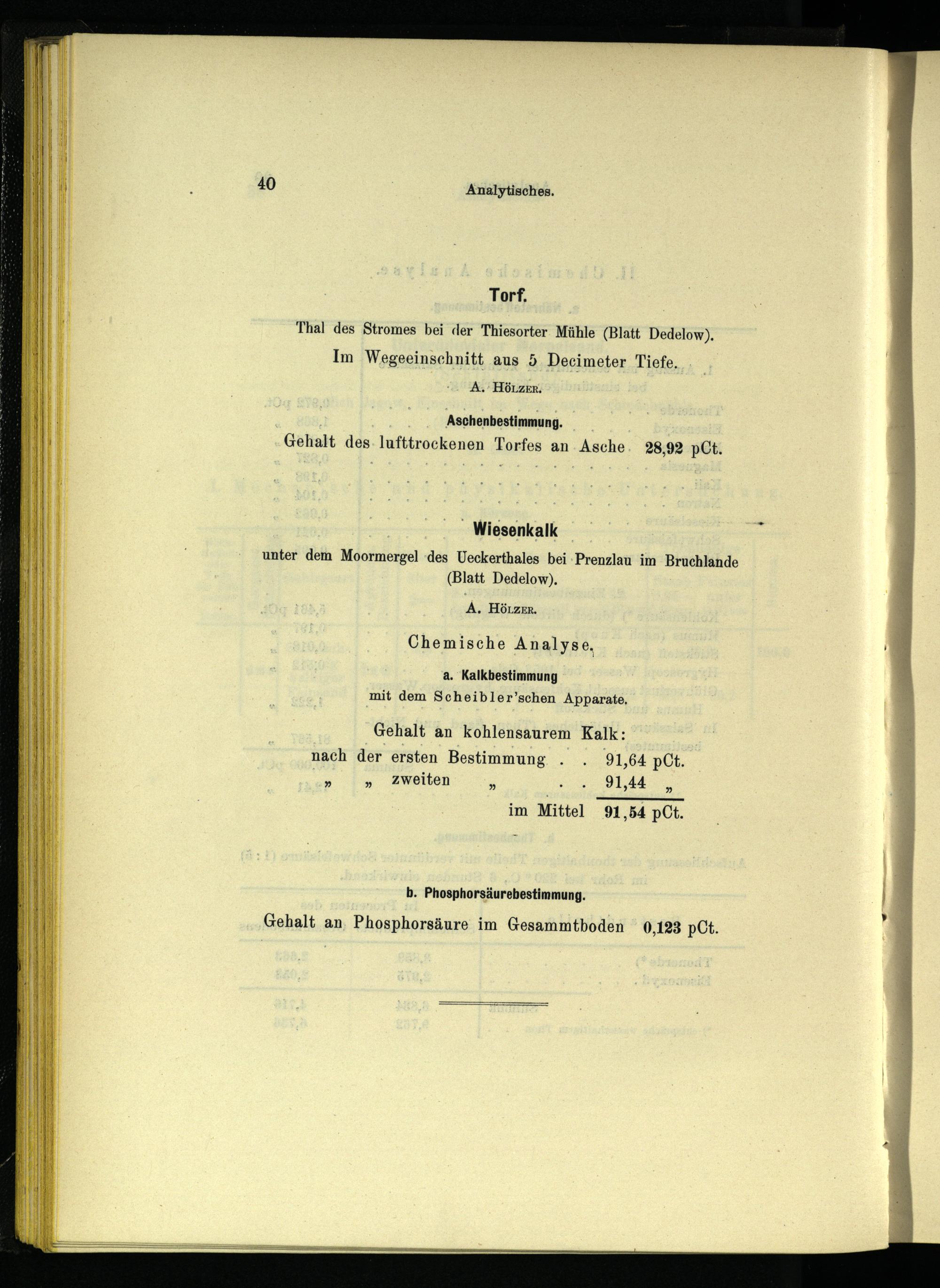 . Aschenbestimmung. Gehalt des. lufttrockenen Torfes an. Asche 28,92 pCt.