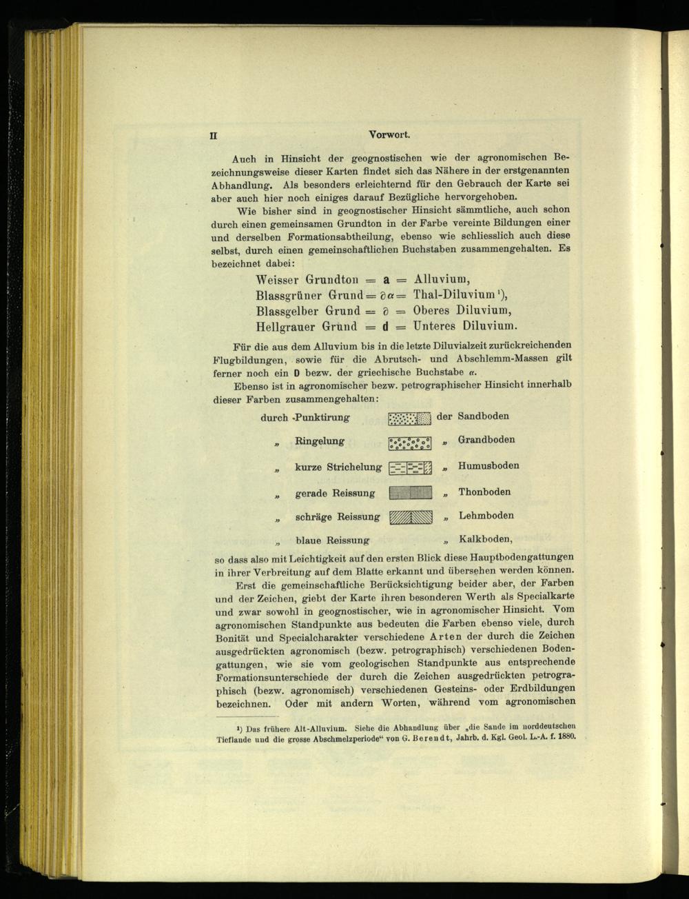 Auch in Hinsicht der geognostischen wie der agronomischen Bezeichnungsweise dieser Karten findet sich das Nähere in der erstgenannten Abhandlung. Als besonders erleichternd für den Gebrauch der Karte sei aber auch hier noch einiges darauf Bezügliche hervorgehoben.
